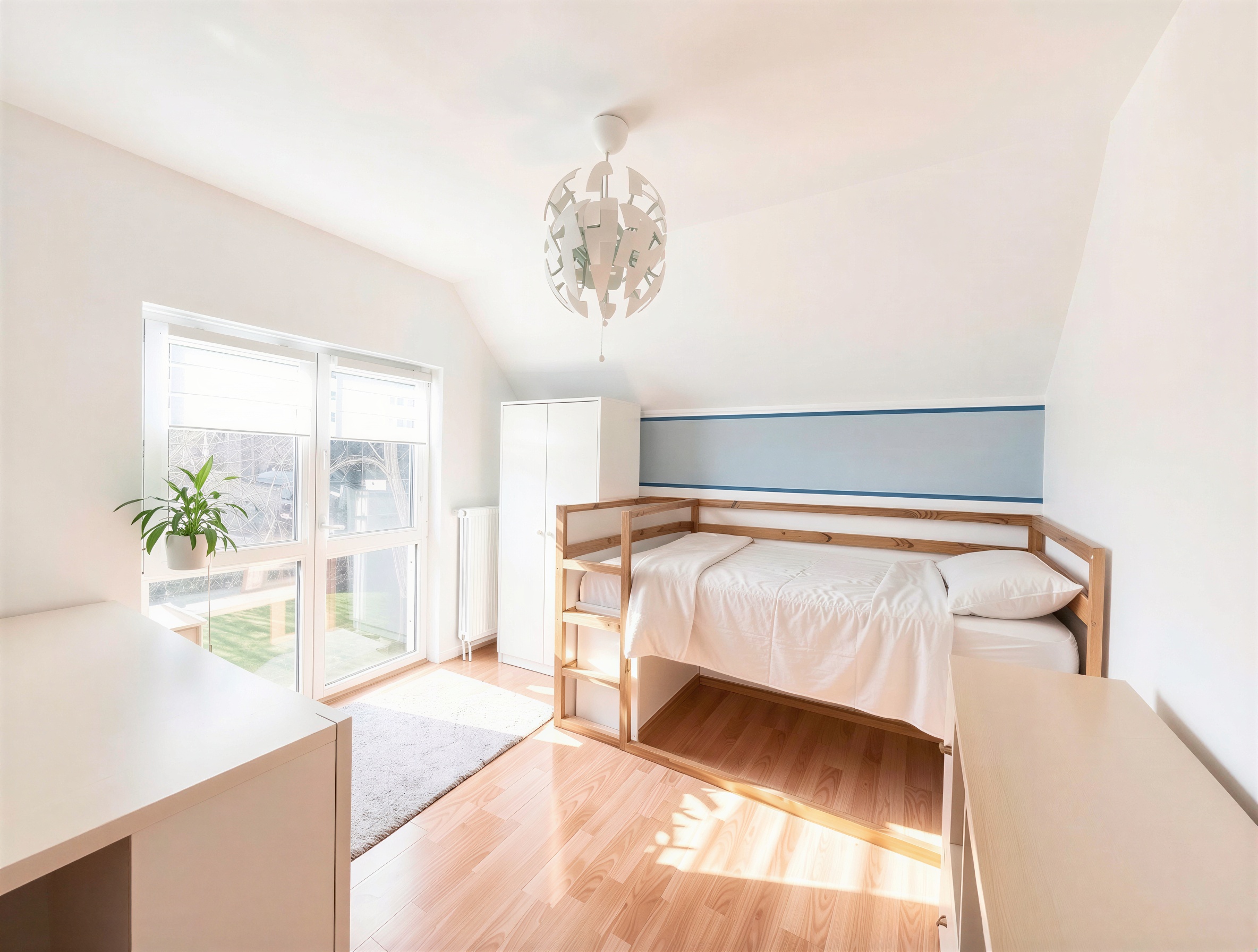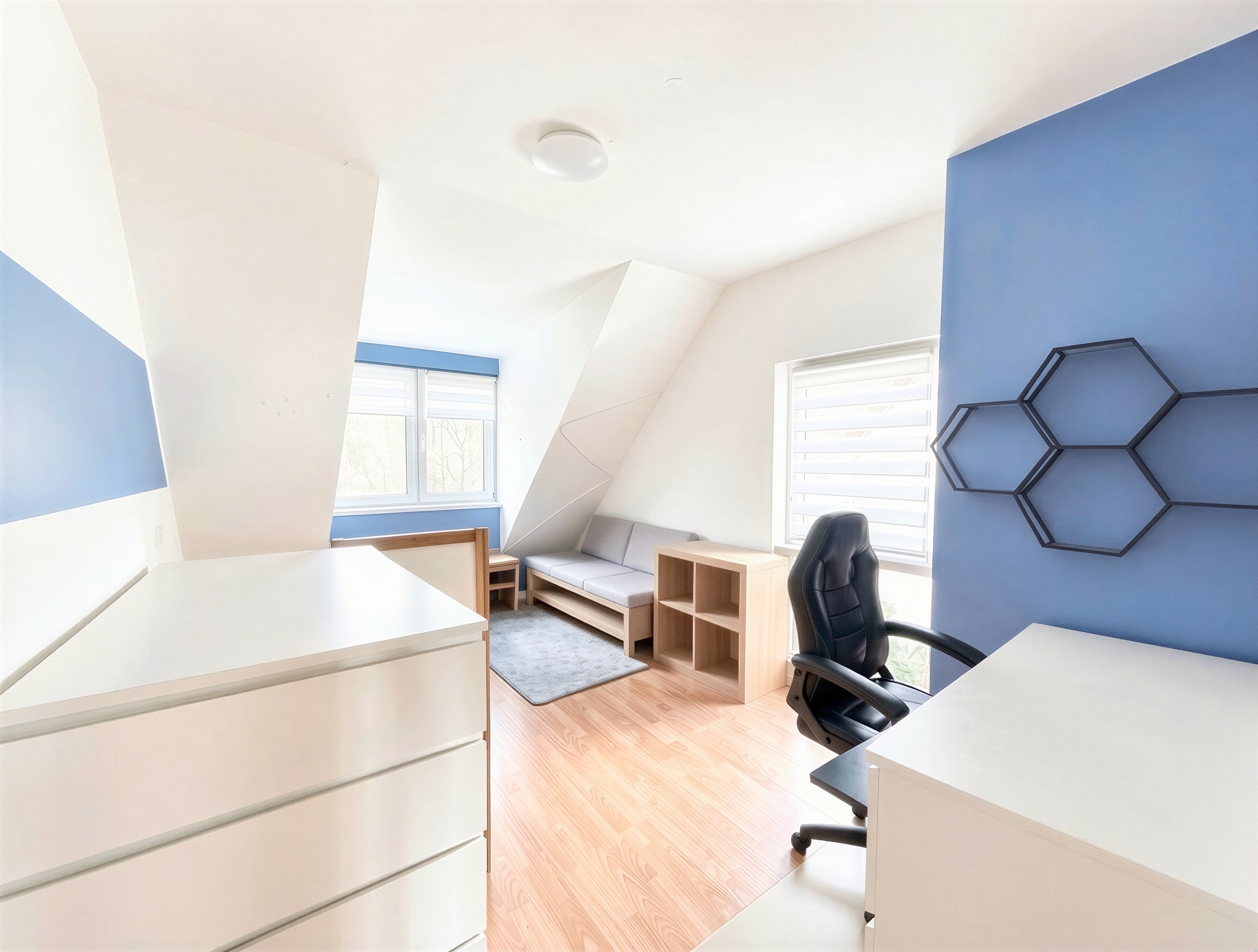 Im Dachgeschoss befindet sich ein großzügiger Hobbyraum mit ca. 19 m² Fläche, der aktuell als Schlafzimmer genutzt wird. Der Raum eignet sich ideal als Arbeitszimmer, Gästezimmer oder zusätzlicher Rückzugsbereich.
