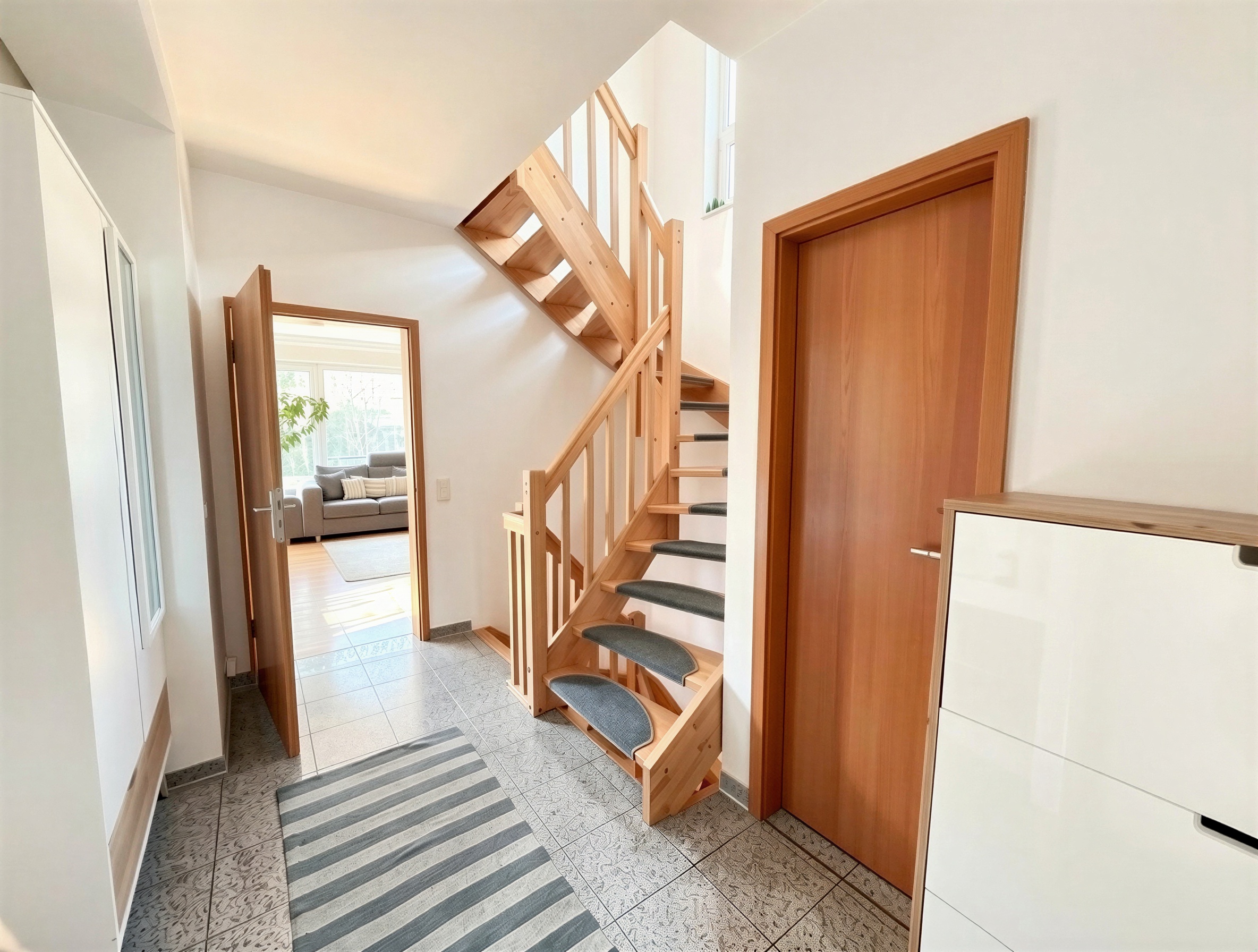 Mit einer Wohnfläche von ca. 115,5 m² sowie zusätzlichen vielseitig nutzbaren Flächen im Dachgeschoss und im Keller bietet das Haus eine durchdachte und familienfreundliche Raumaufteilung mit viel Platz für Wohnen, Arbeiten und Gäste. Ergänzend stehen ein Hobbyraum im Dachgeschoss mit ca. 19 m² sowie weitere ca. 52 m² Nutzfläche im Keller zur Verfügung. Insgesamt ergibt sich damit eine Wohn- und Nutzfläche von rund 167,5 m².