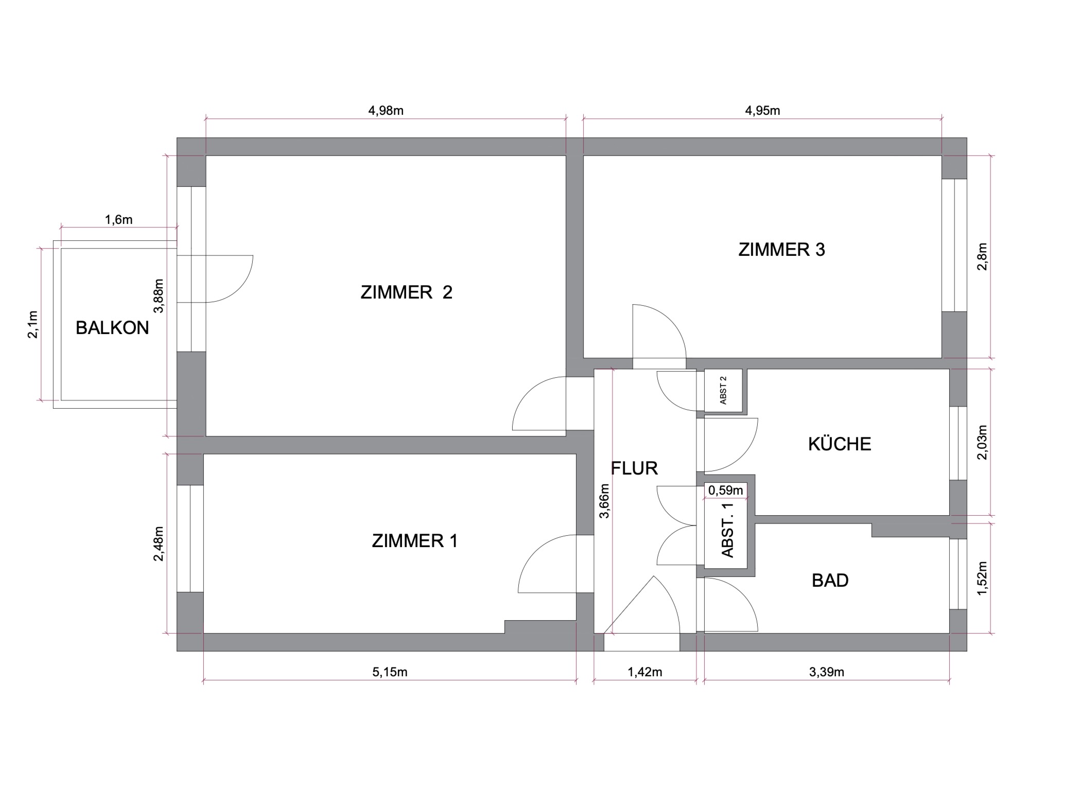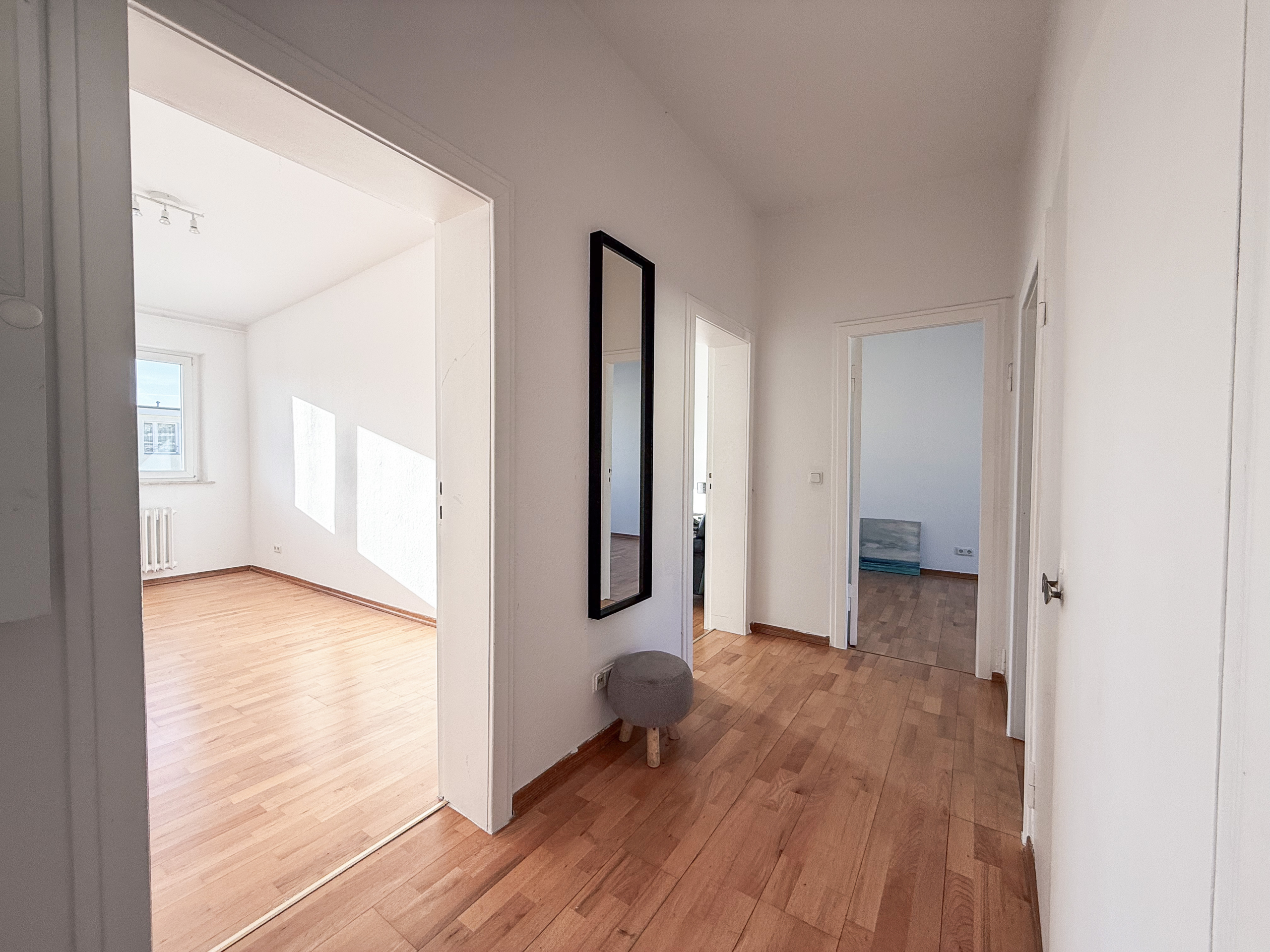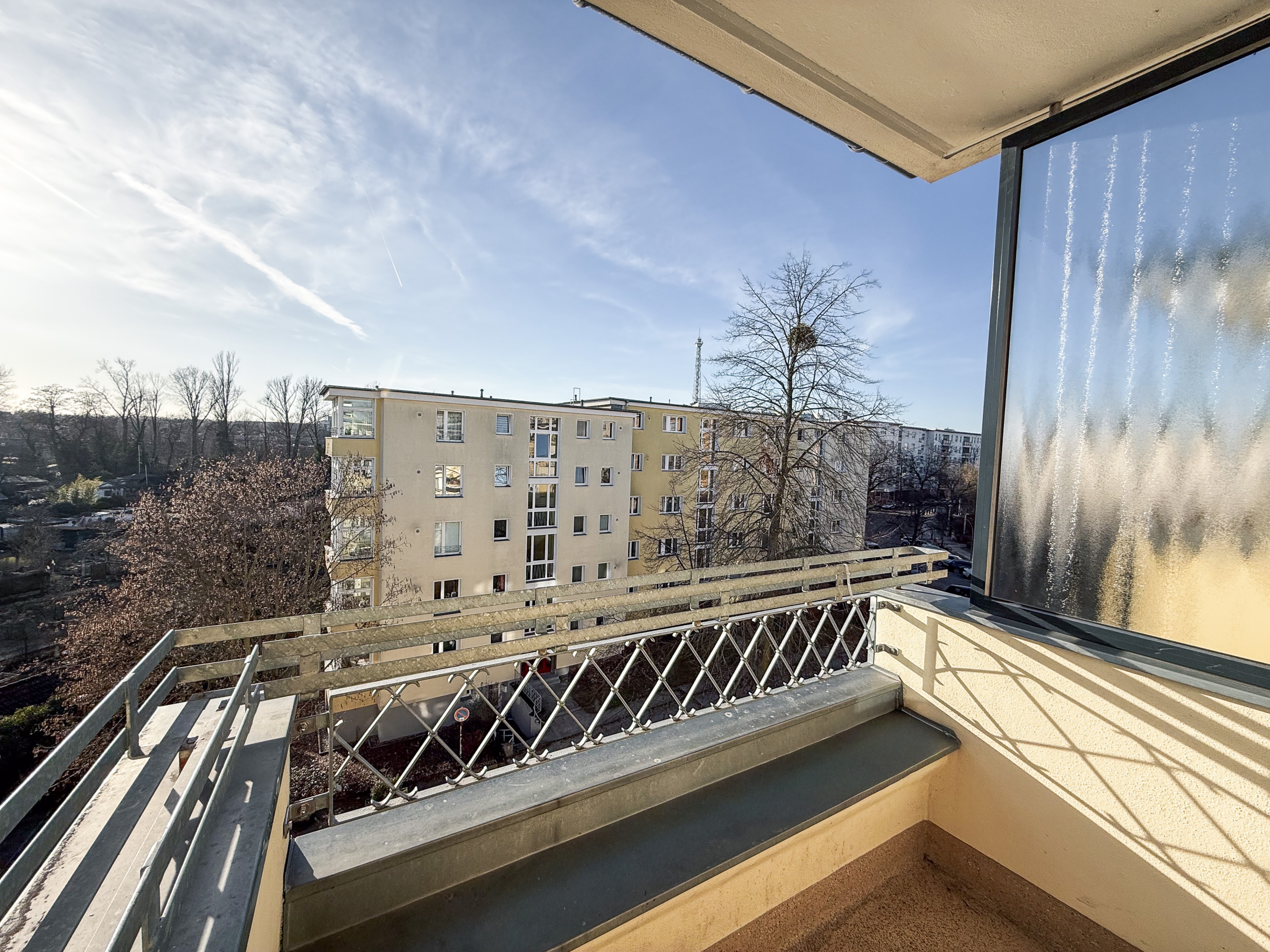 Auf ca. 62,15 m² Wohnfläche verteilen sich drei gut geschnittene Zimmer mit funktionaler, klarer Raumaufteilung. Das Wohnzimmer mit direktem Zugang zur Westloggia mit ca. 3,36 m² bietet einen weiten Blick über die umliegende Bebauung bis hin zum West-Berliner Fernsehturm. Die Lage im obersten Geschoss sorgt für angenehme Privatsphäre und sehr gute Lichtverhältnisse. Die beiden weiteren Zimmer lassen sich flexibel als Schlafzimmer, Arbeitszimmer, Kinderzimmer oder Gästezimmer nutzen und ermöglichen unterschiedliche Wohnkonzepte - sowohl für Singles als auch für Paare oder kleine Familien.
