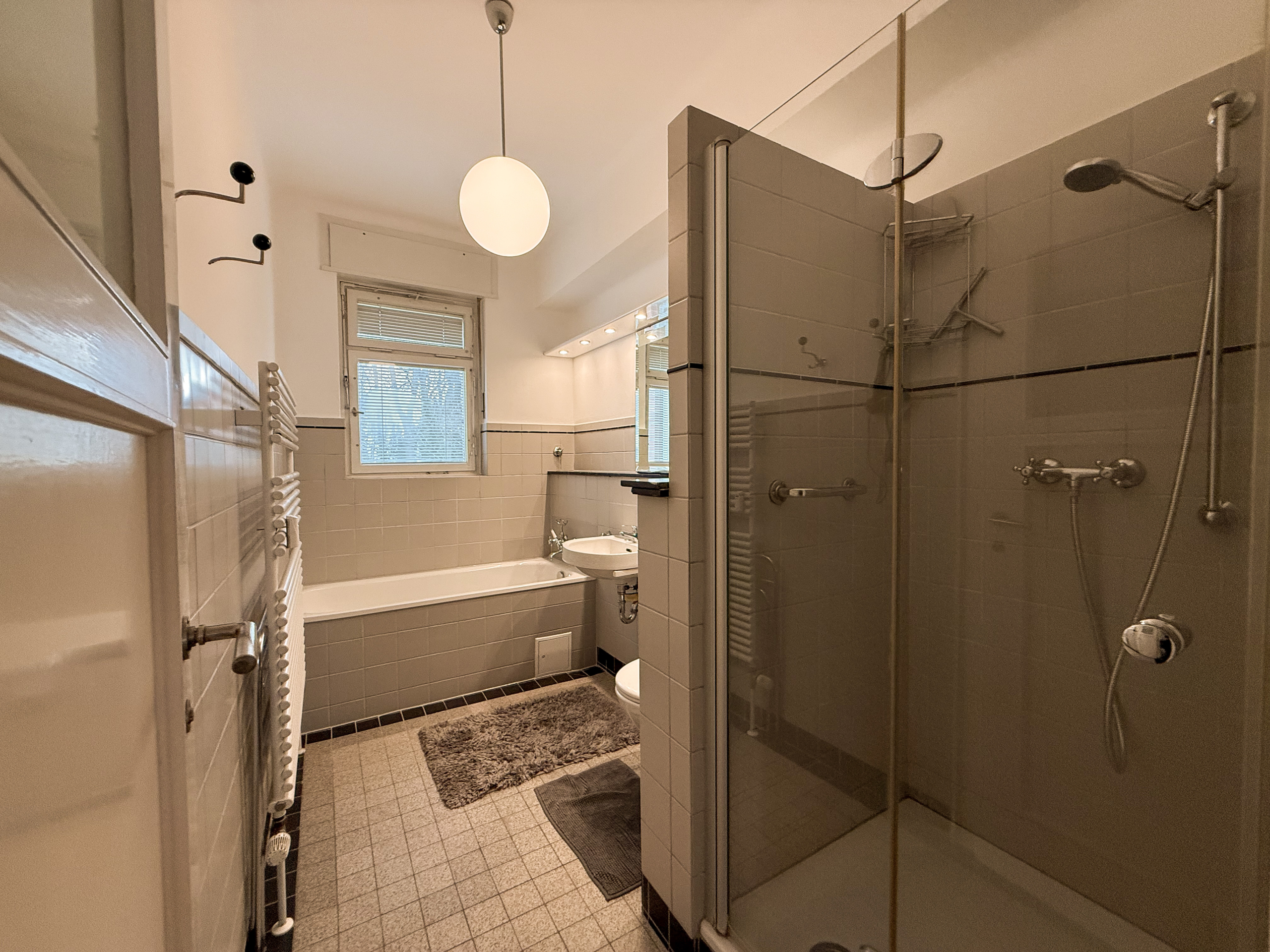 Das Tageslichtbad ist mit Badewanne und separater Dusche ausgestattet und komfortabel dimensioniert. Zwei separate Kellerabteile bieten zusätzlichen Stauraum und unterstreichen die Alltagstauglichkeit dieser Wohnung.