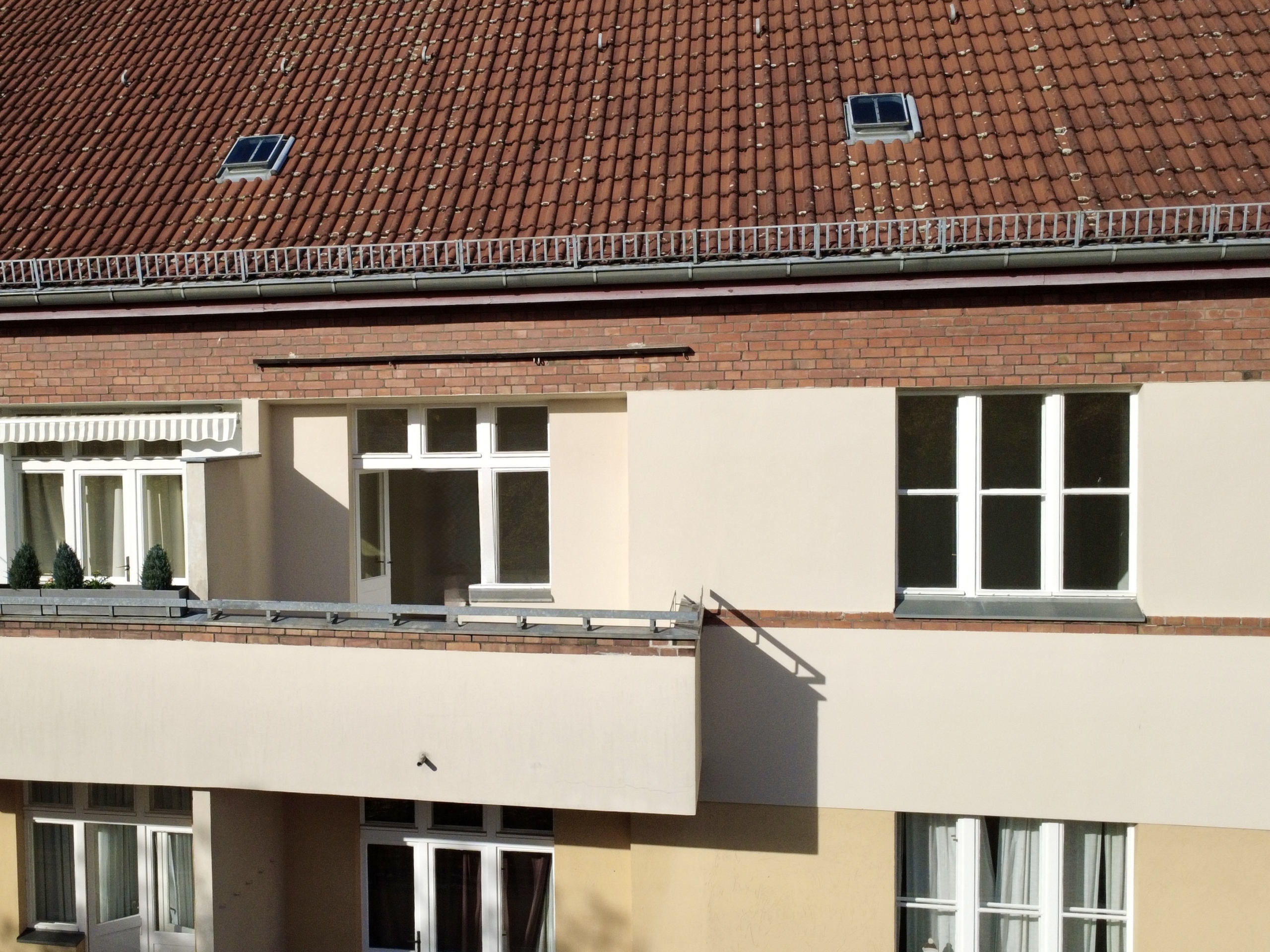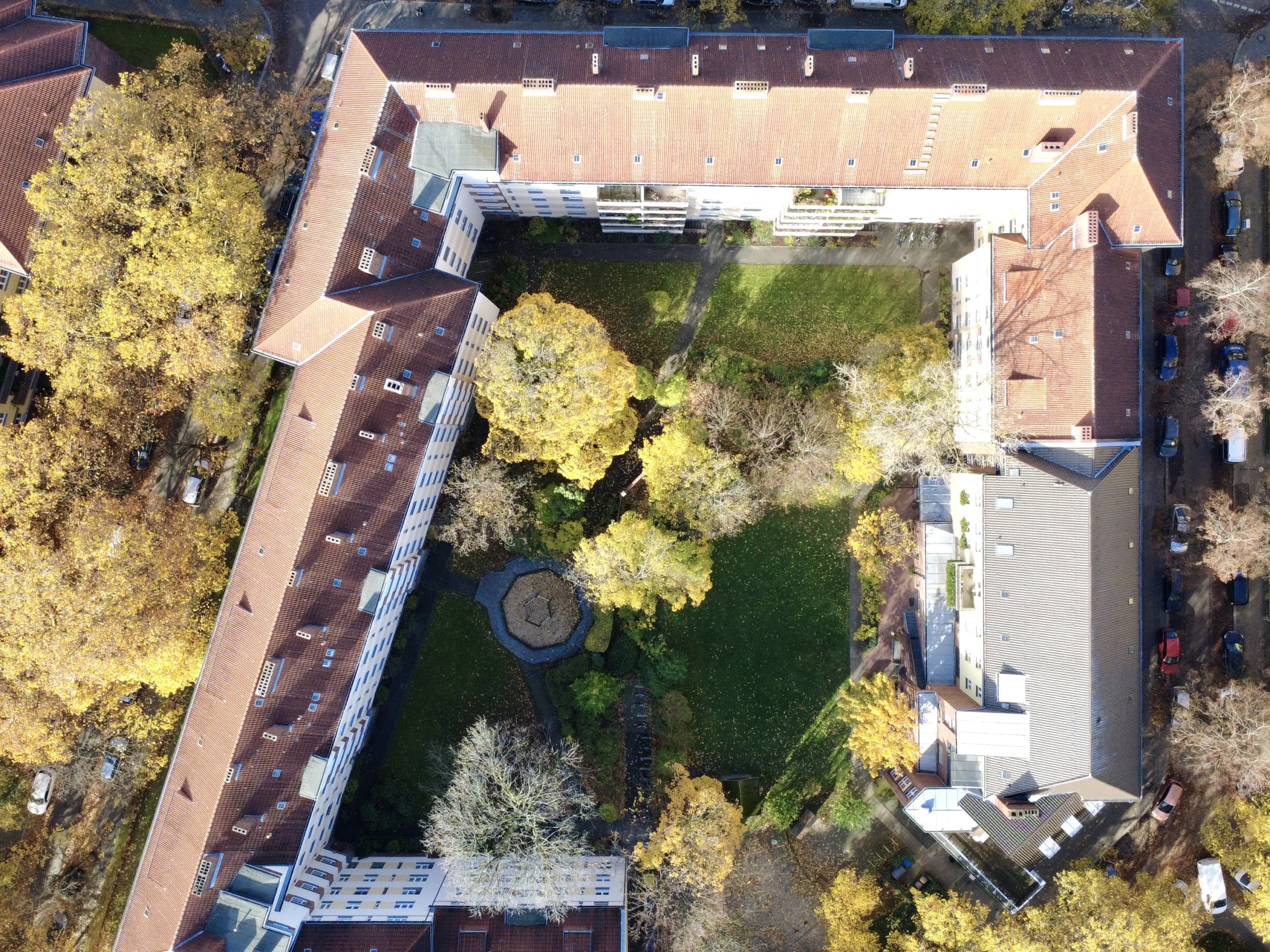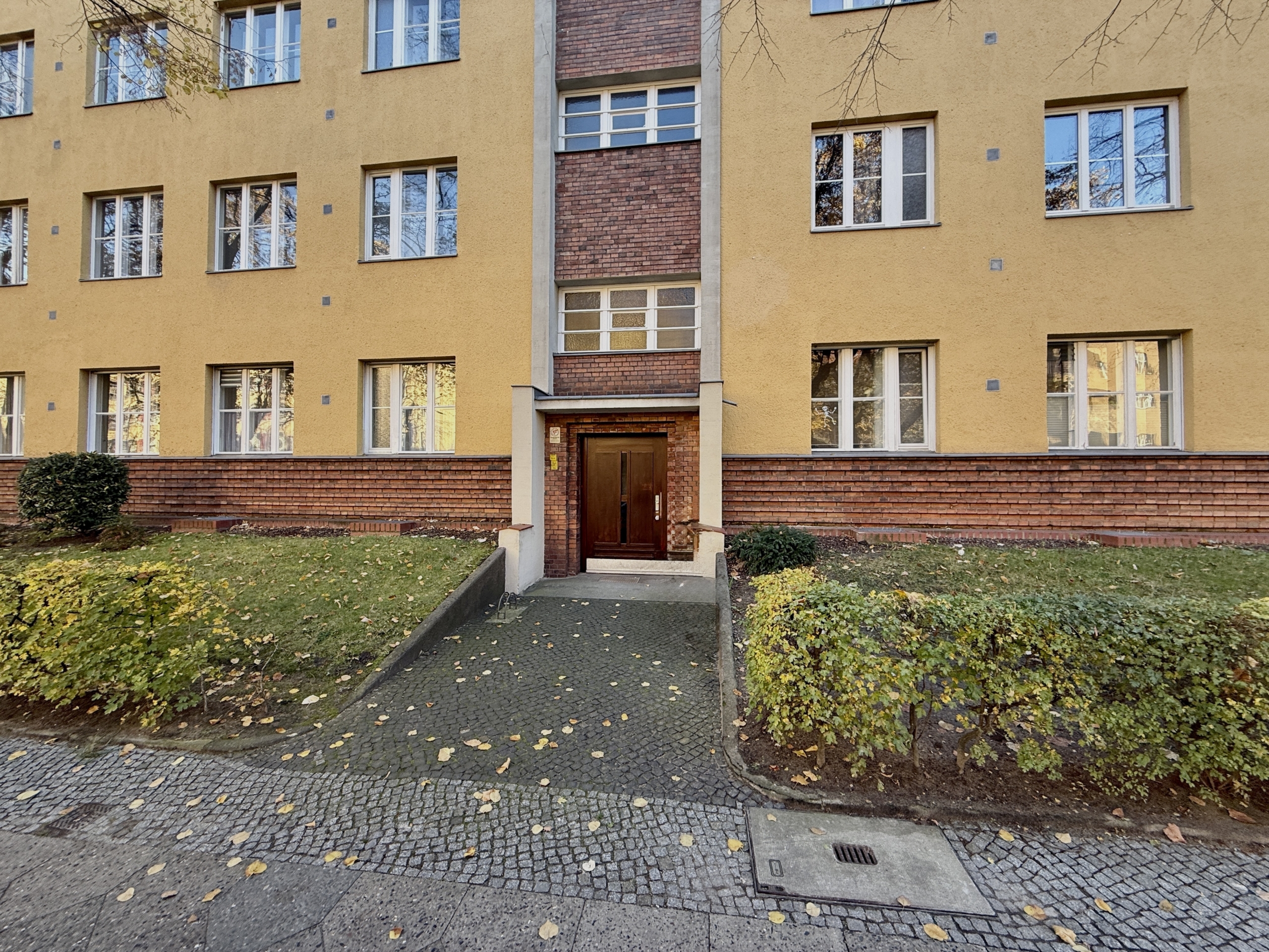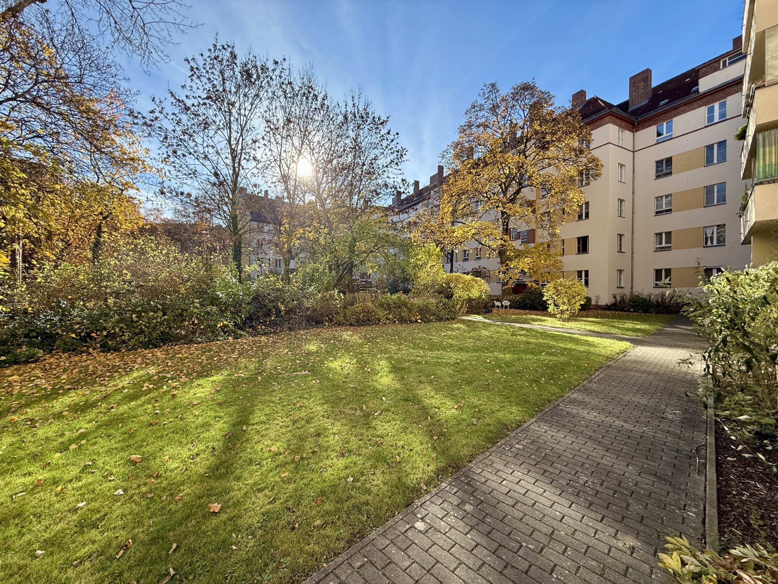 Die bezugsfreie 3-Zimmer-Wohnung befindet sich in einem gepflegten Gebäudeensemble aus den 1930er-Jahren, das durch seine klassische Architektur und solide Bausubstanz überzeugt. Der Zugang zu dem Gebäudeteil, in dem sich die Wohnung befindet, erfolgt vom Südwestkorso. Der weitläufige, begrünte Innenhof lädt zum Verweilen ein und vermittelt eine angenehme, ruhige Atmosphäre. Hier befinden sich ein Spielbereich mit Sandkiste und Klettergerüst sowie Fahrradabstellmöglichkeiten. Vom Hof aus besteht zudem ein Zugang zu einem gemeinschaftlichen Fahrradraum. Die gesamte Anlage wirkt sehr gepflegt und harmonisch.