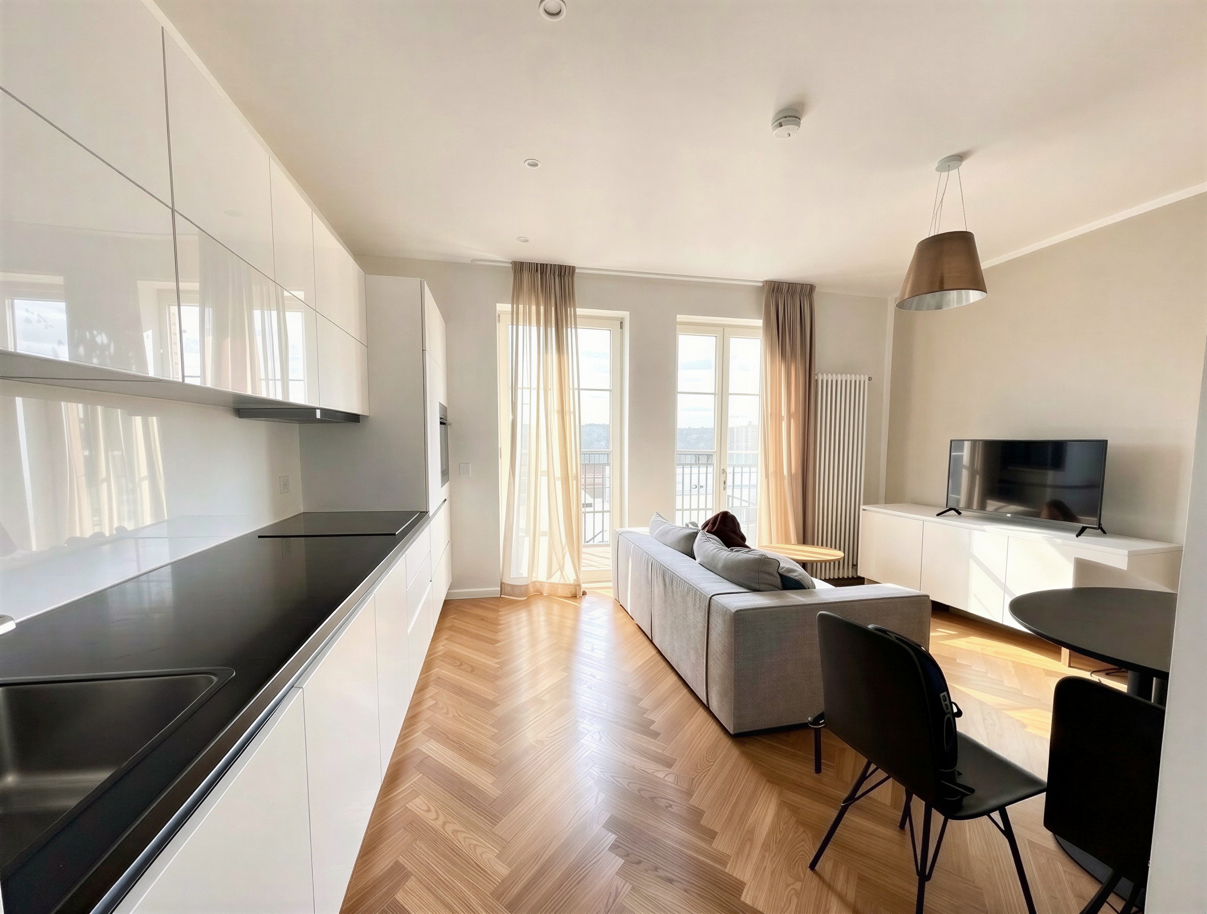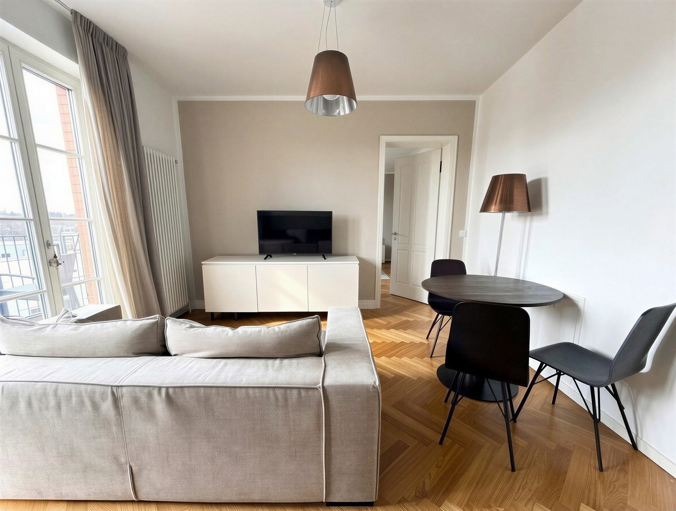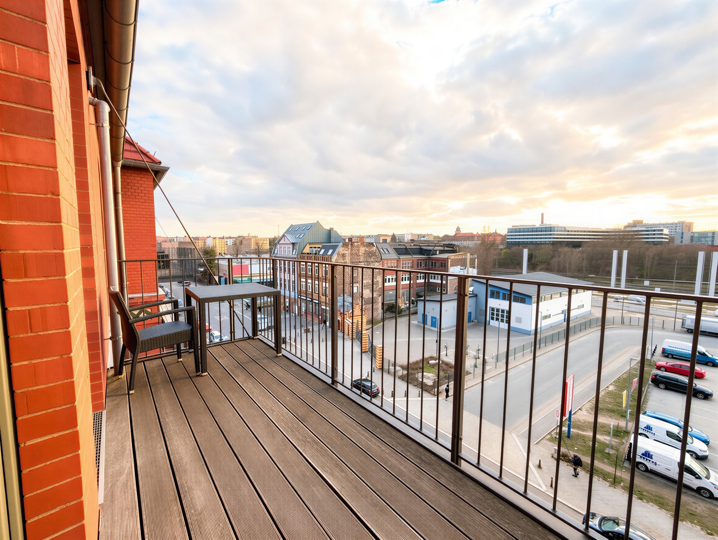 Ein echtes Highlight sind die zwei Balkone in Westausrichtung, die den Wohnraum auf sehr schöne Weise nach außen erweitern und der Wohnung eine spürbare zusätzliche Großzügigkeit verleihen. Vor allem in den Nachmittags- und Abendstunden entsteht hier eine Licht- und Wohnatmosphäre, die perfekt zum stilvollen Gesamtcharakter der Wohnung passt und das ohnehin sehr besondere Wohngefühl zusätzlich unterstreicht.