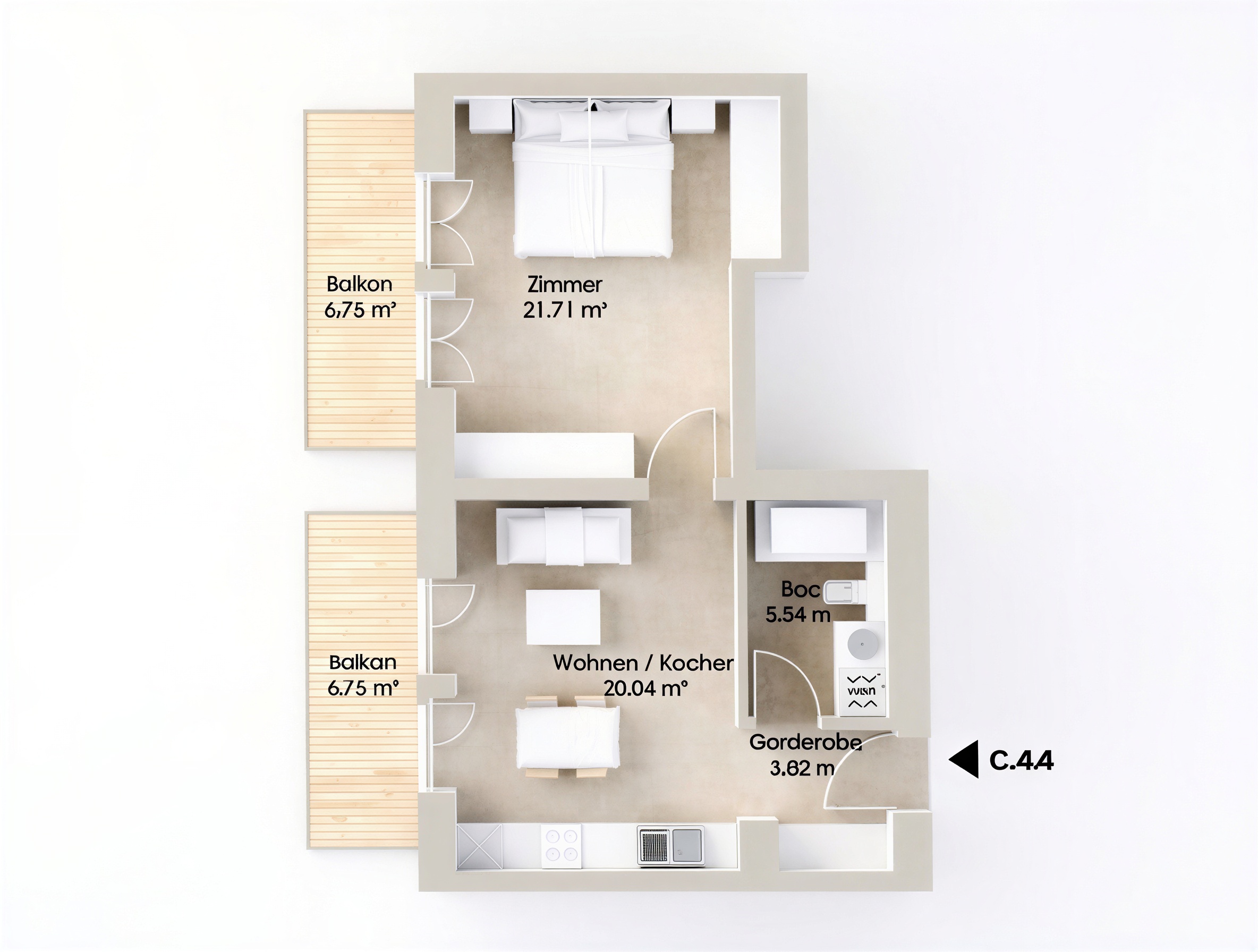 Insgesamt handelt es sich um eine Wohnung, die weit mehr ist als eine klassische 2-Zimmer-Kapitalanlage. Sie ist ein hochwertig kuratiertes, sofort überzeugendes Gesamtprodukt mit klarer gestalterischer Handschrift, außergewöhnlicher Stimmigkeit und einem Seltenheitswert, der in dieser Form am Markt nur selten zu finden ist.