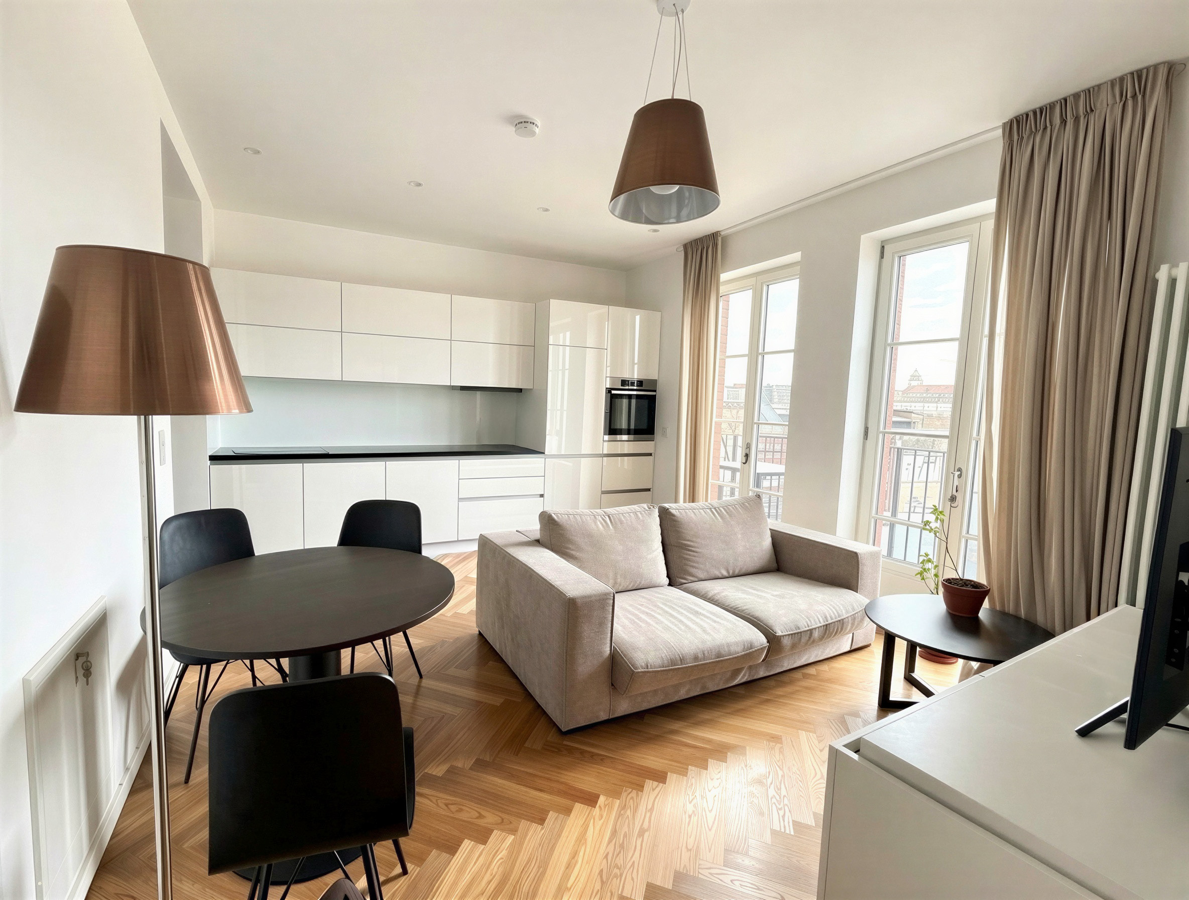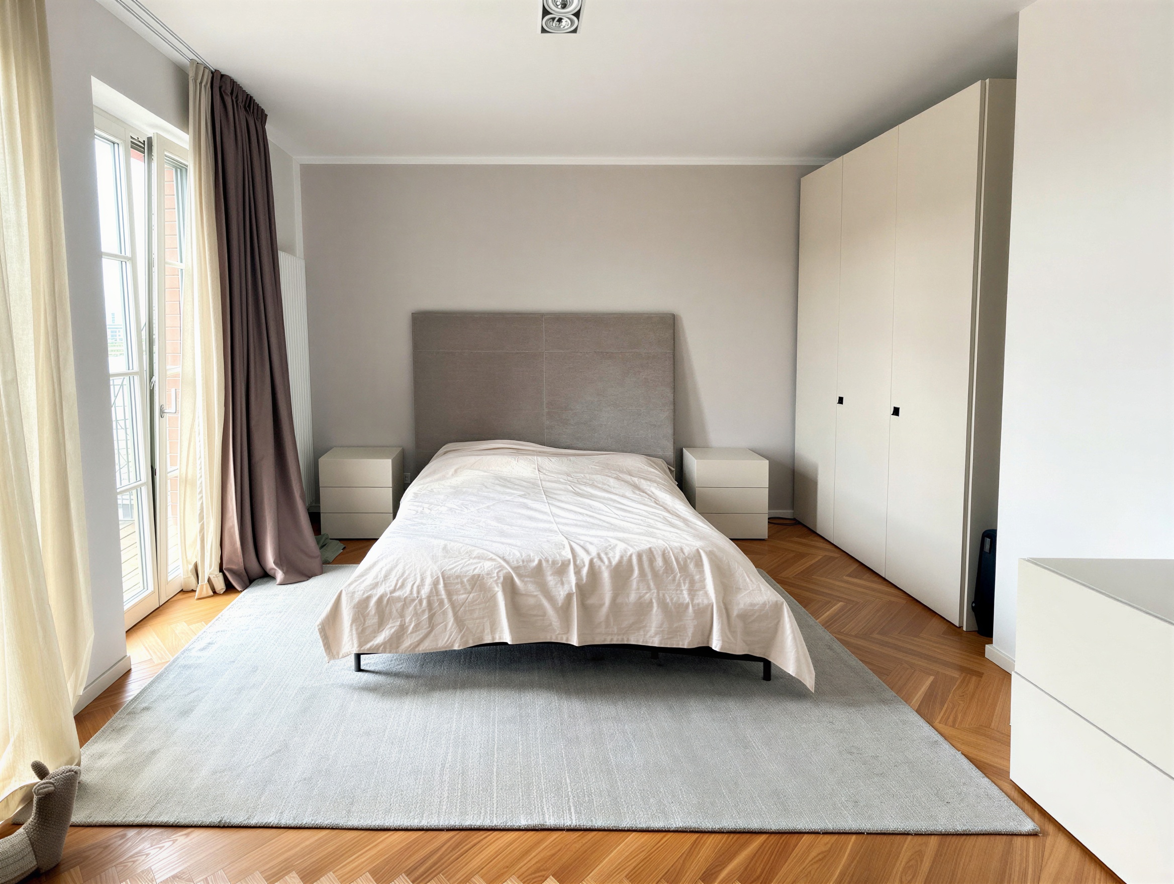 Die abgebildete Möblierung ist im Kaufpreis enthalten und unterstreicht den besonderen Charakter der Wohnung zusätzlich. Dadurch eignet sich die Immobilie nicht nur als werthaltige Kapitalanlage, sondern auch perspektivisch für Käufer, die eine sofort überzeugende, fertig gedachte Wohnung mit außergewöhnlich hochwertigem Gesamtauftritt suchen. Die Innenaufnahmen wurden für die Vermarktung so aufbereitet, dass persönliche Gegenstände des Mieters digital entfernt wurden, um die Raumwirkung und die Qualität der Ausstattung bestmöglich hervorzuheben.