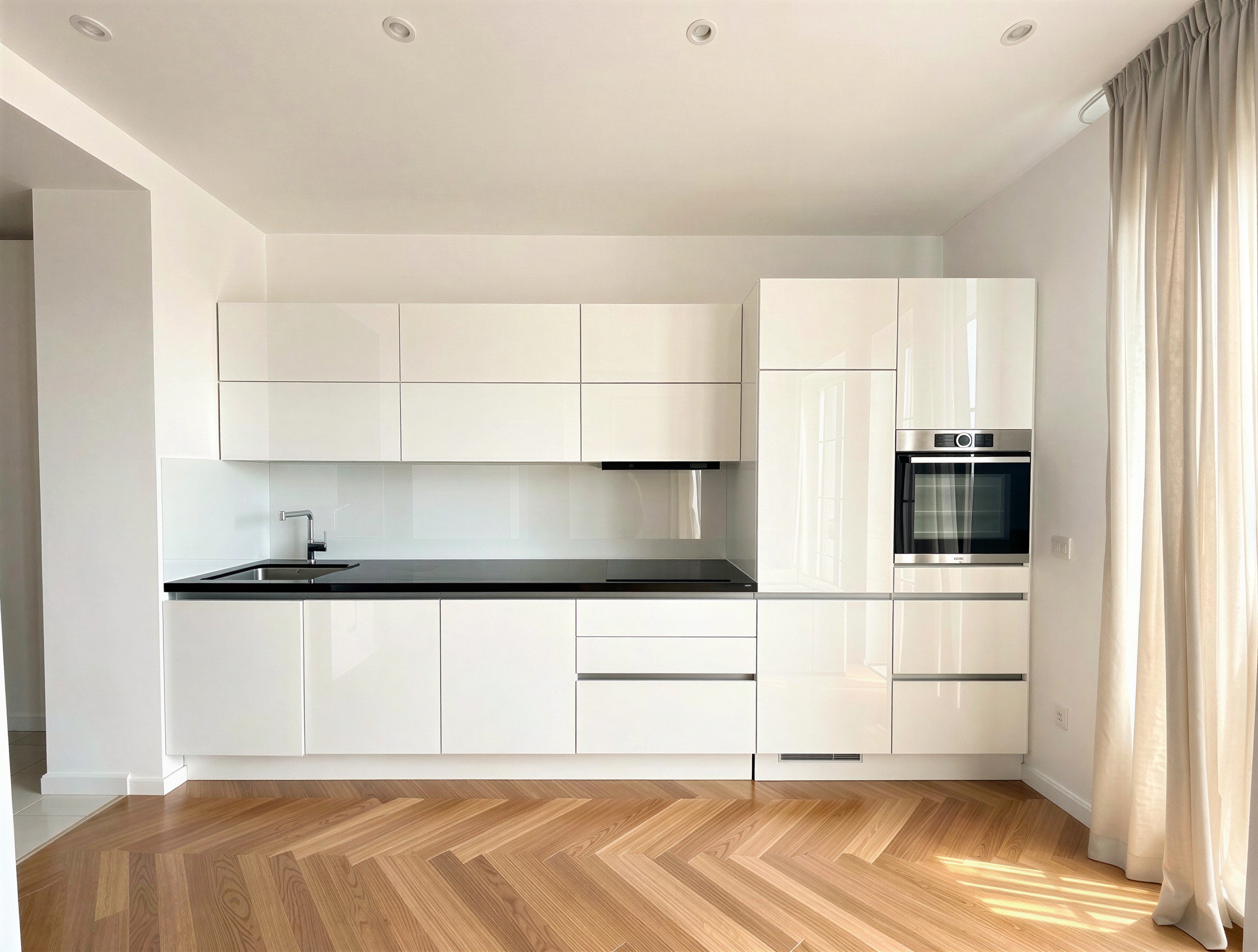 Die Wohnung selbst überzeugt vor allem durch ihre außergewöhnlich klare gestalterische Linie. Alles wirkt hochwertig, sehr bewusst ausgewählt und bis ins Detail aufeinander abgestimmt. Der offen gestaltete Wohn- und Essbereich bildet das Zentrum der Wohnung und vermittelt gemeinsam mit der hochwertigen Möblierung, den klaren Linien und der stimmigen Materialwahl eine fast hotelartige Eleganz, ohne dabei an Wohnlichkeit zu verlieren. Gerade diese seltene Mischung aus Design, Wärme und Funktionalität macht den besonderen Reiz der Wohnung aus.