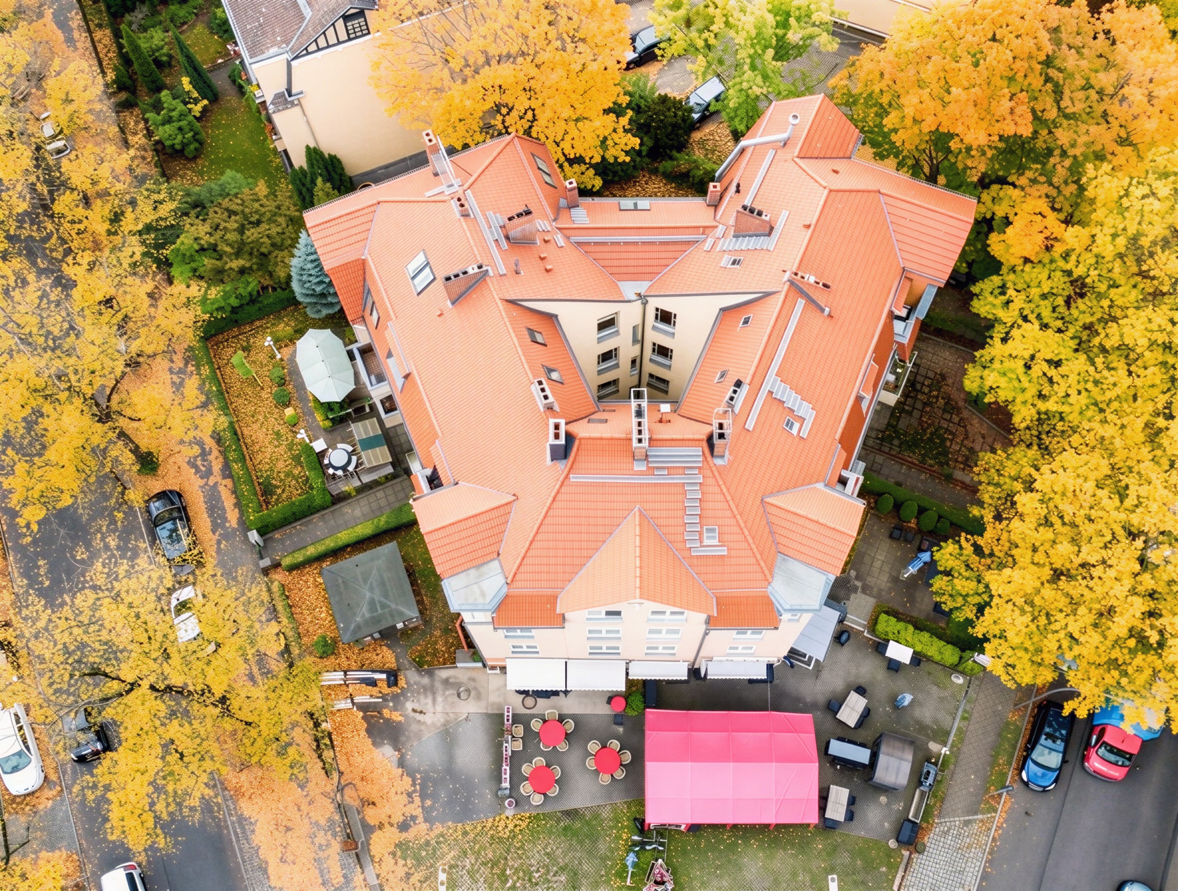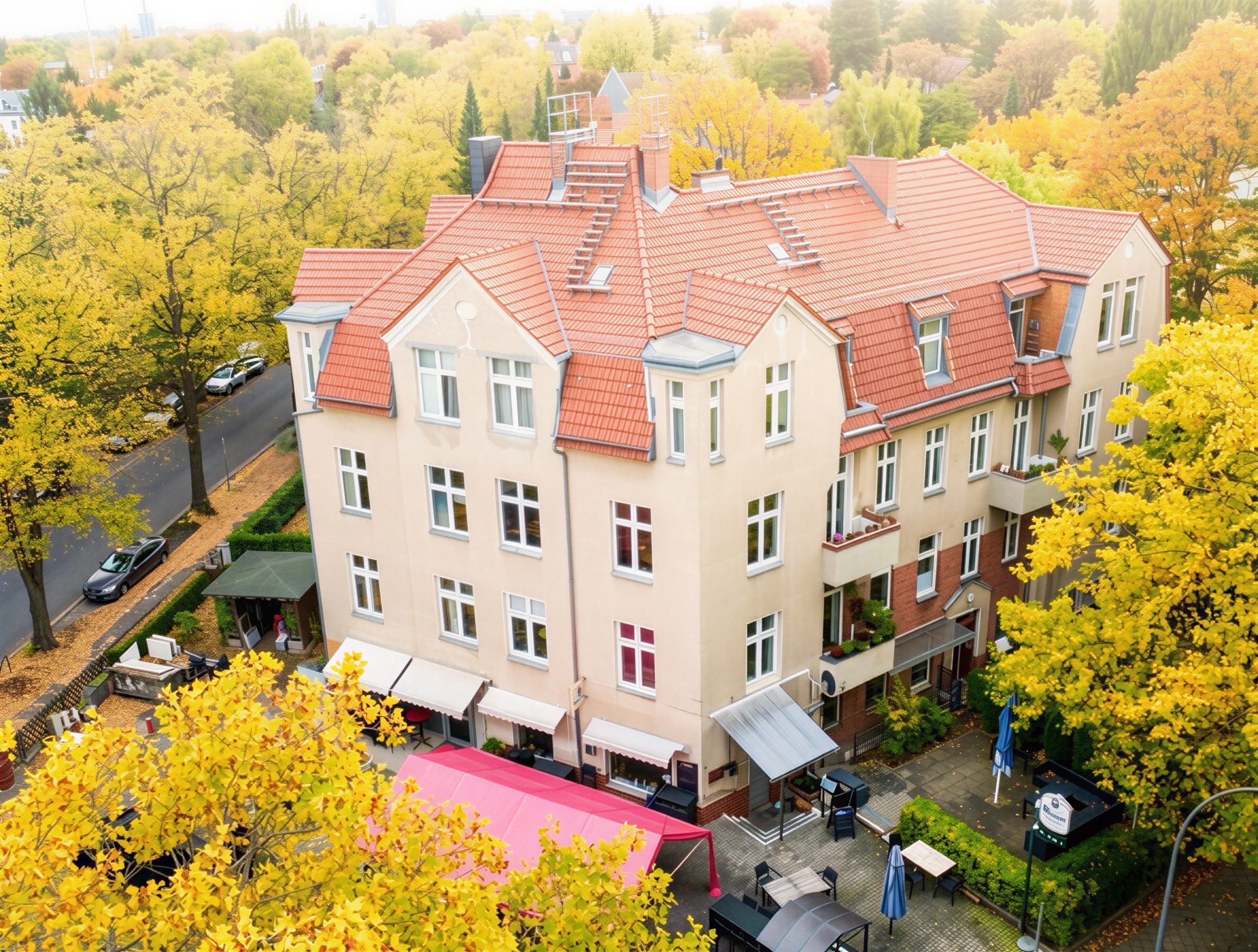 Das im Jahr 1915 errichtete Eckhaus präsentiert sich als klassischer Altbau mit klarer, ausgewogener Architektur und einer markanten Dachform, die dem Gebäude eine harmonische Silhouette verleiht.