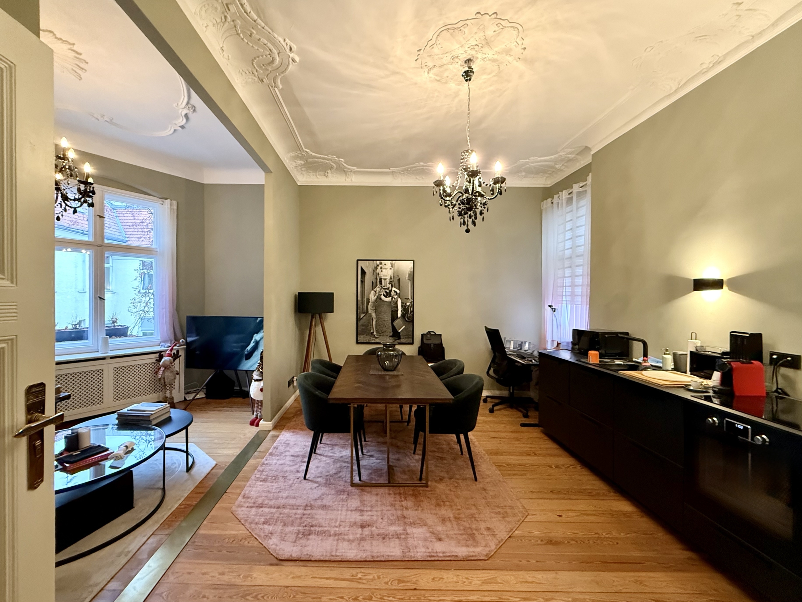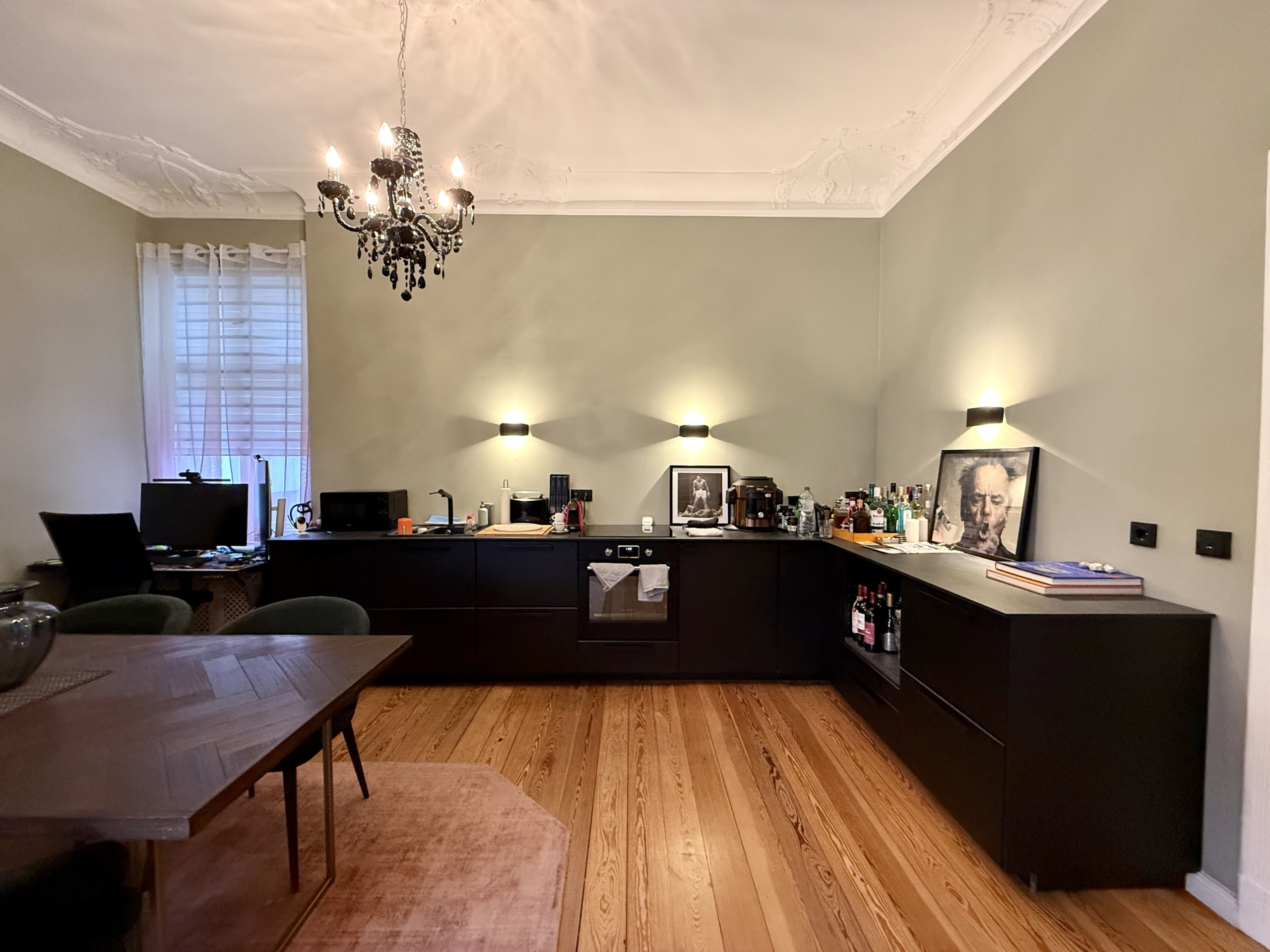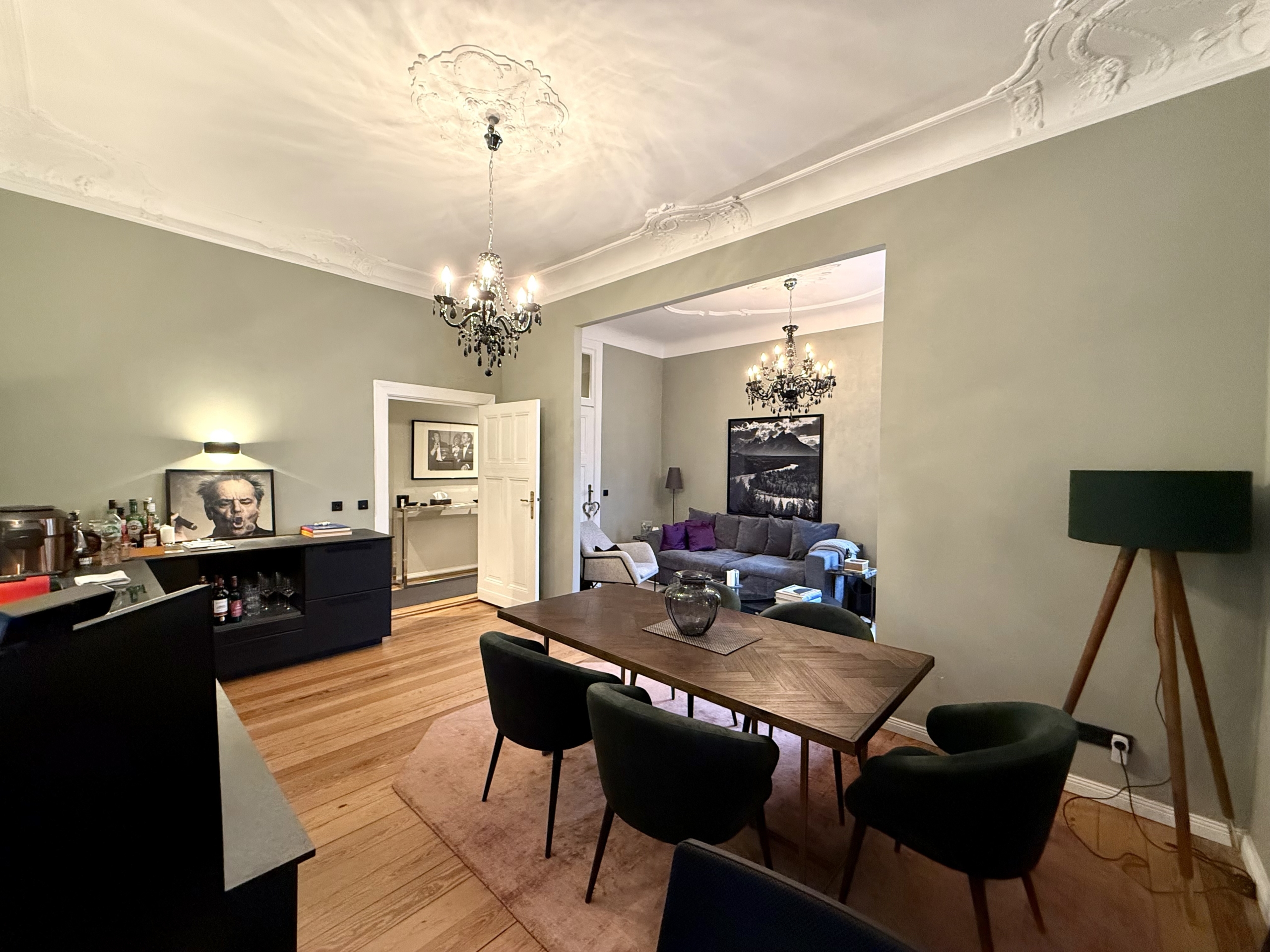 In der begehrten Charlottenburger Niebuhrstraße, zwischen Wieland- und Leibnizstraße, präsentiert sich diese hochwertig sanierte Altbauwohnung als stilvolle Adresse für anspruchsvolles Wohnen. Auf rund 73,88 Quadratmetern entsteht ein harmonisches, lichtdurchflutetes Wohnambiente, das klassische Berliner Architekturdetails mit zeitgemäßem Wohnkomfort verbindet. Sorgfältig aufgearbeitete Dielenböden, elegante Stuckelemente, charakteristische Altbautüren und hochwertig gefertigte Heizungsverkleidungen unterstreichen den repräsentativen Charakter dieser besonderen Immobilie. Bereits das gepflegte Entrée sowie das ansprechende Treppenhaus vermitteln ein Gefühl von Wertigkeit und architektonischer Kontinuität.
