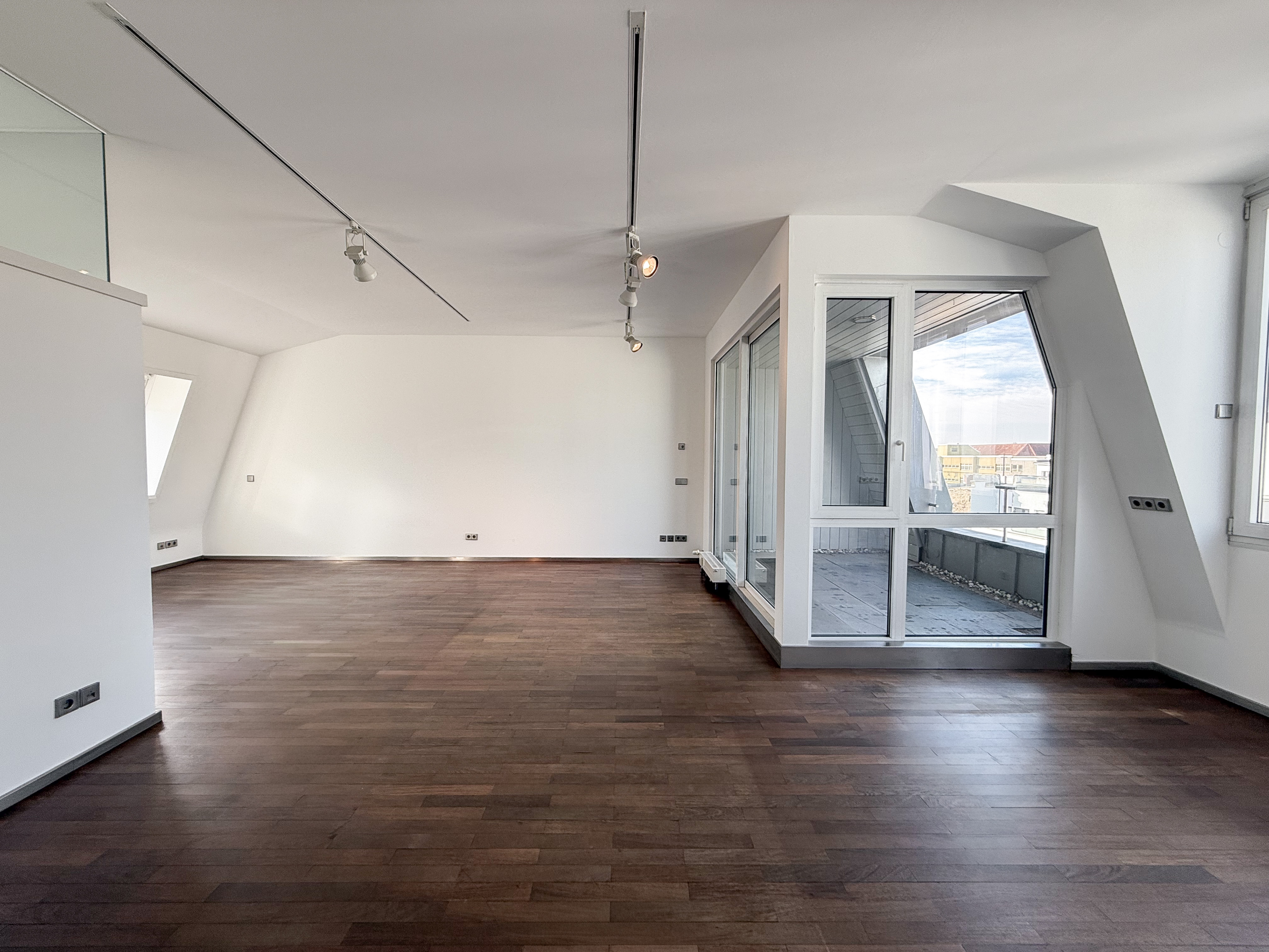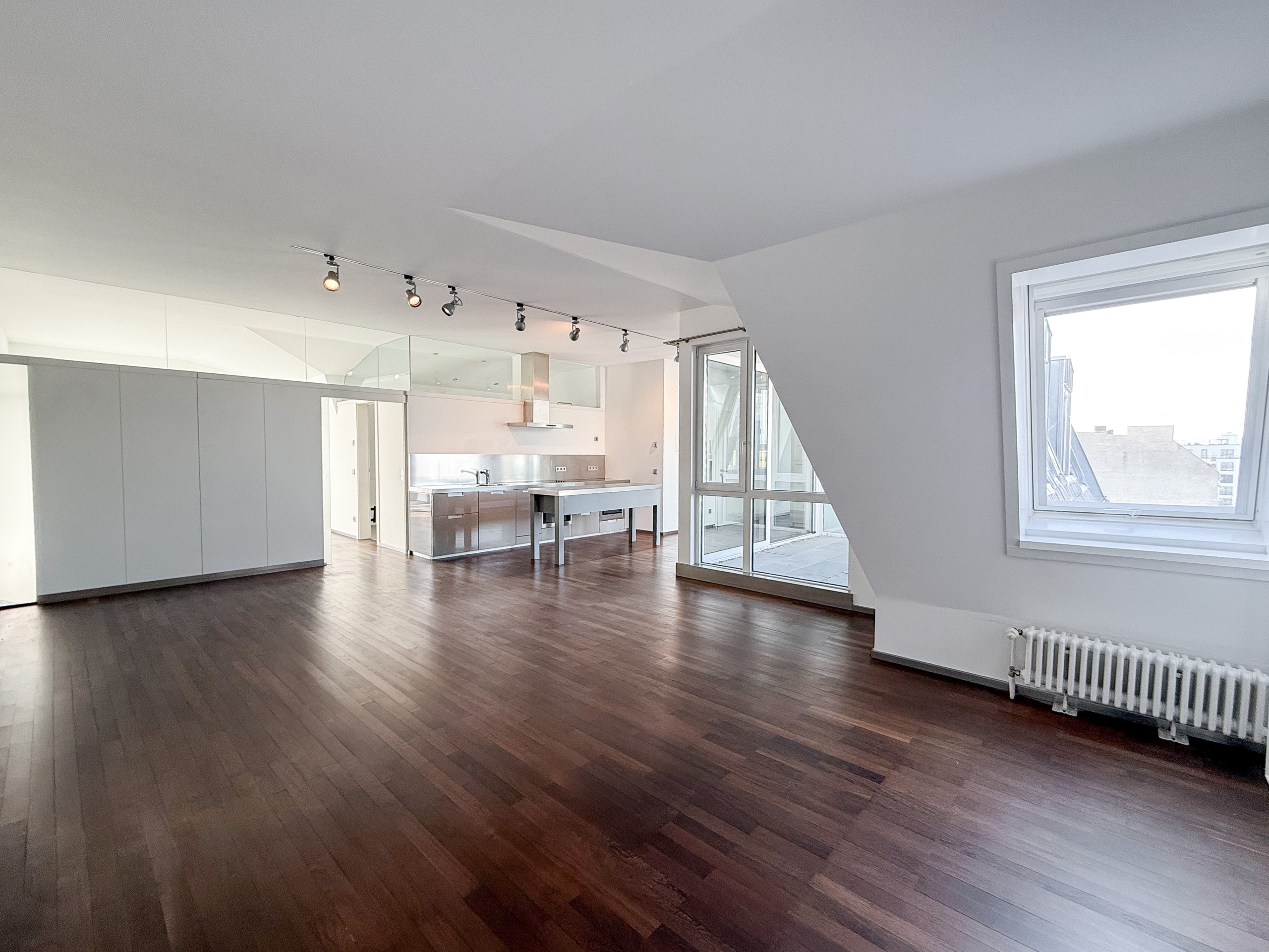 Diese außergewöhnliche Dachgeschossresidenz vereint Großzügigkeit, Privatsphäre und architektonische Qualität auf beeindruckende Weise. Im Jahr 2000 neu ausgebaut, präsentiert sich die Wohnung heute als durchdachtes Wohnkonzept mit rund 155,80 m² Wohnfläche und dem Gefühl eines Hauses auf dem Haus. Der direkte Zugang über den Aufzug – bequem vom Hof aus erreichbar – unterstreicht diesen besonderen, nahezu autarken Charakter.