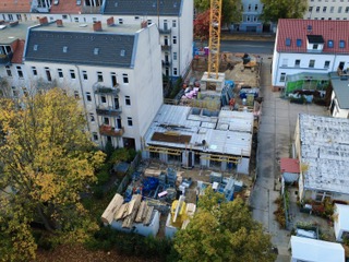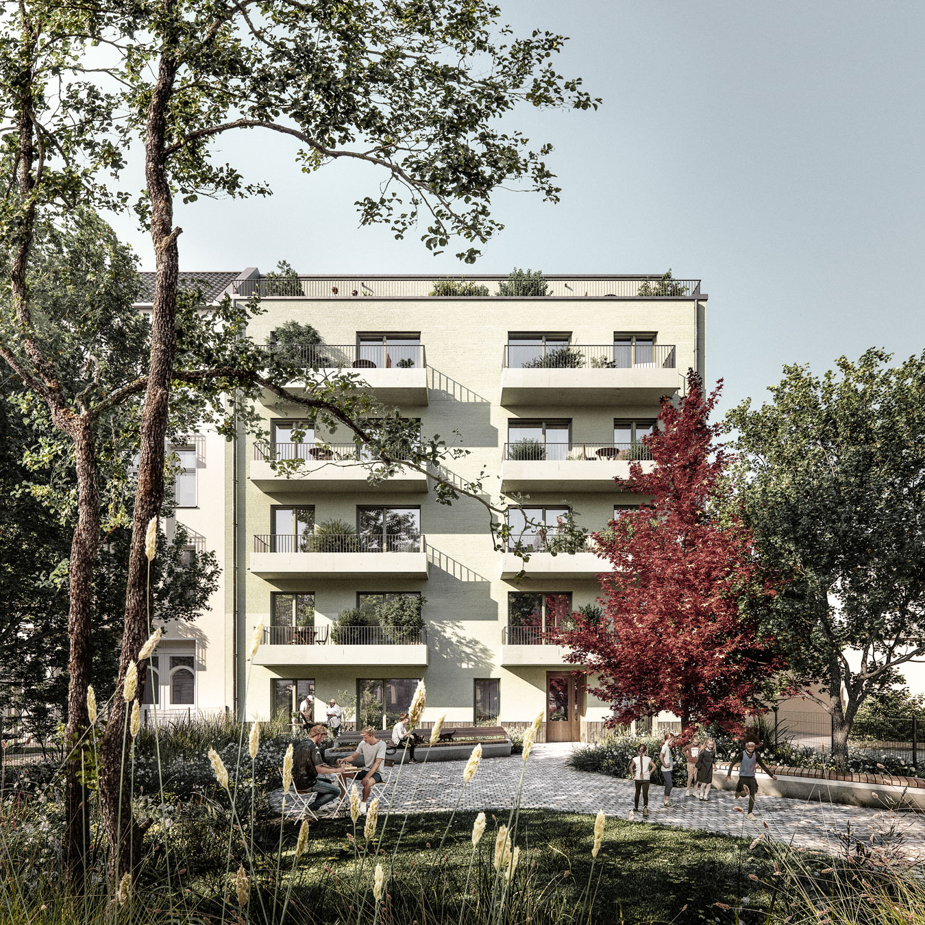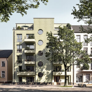 In Treptow entstehen zwei sechsgeschossige Wohnhäuser, die modernen Wohnraum in einer historisch gewachsenen Umgebung bieten. Mit einer Kombination aus unterschiedlichen Fassadenelementen, lackierten Holzfenstern und großen Dachterrassen vereinen diese Gebäude zeitlose Ästhetik und flexible Wohnlösungen für den urbanen Lebensstil.